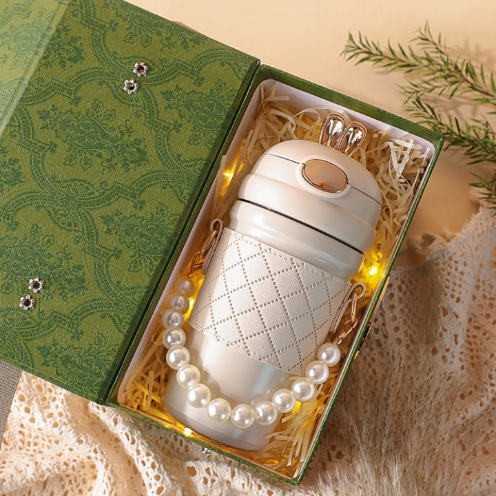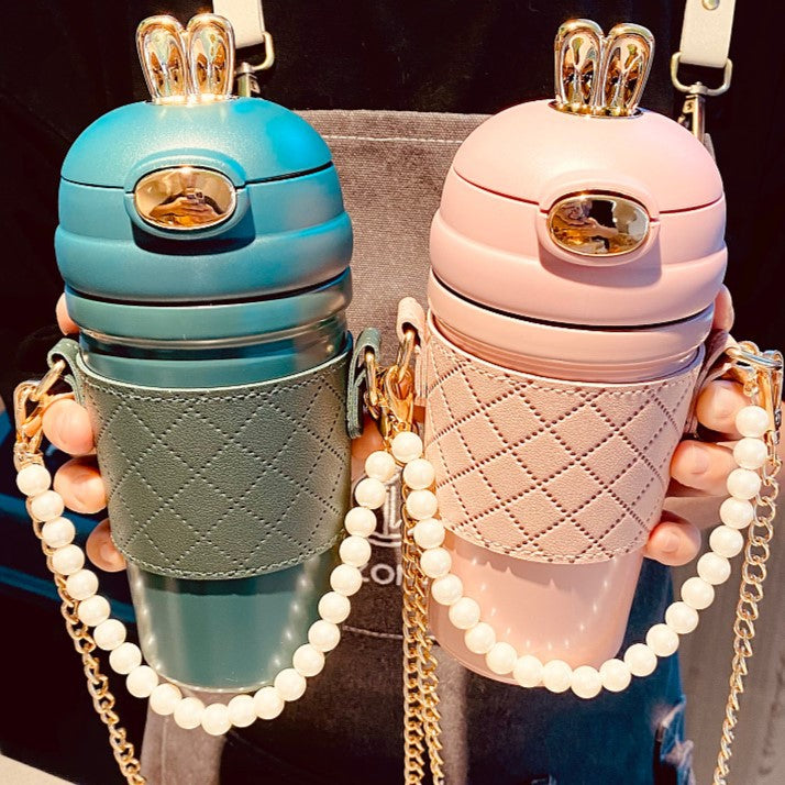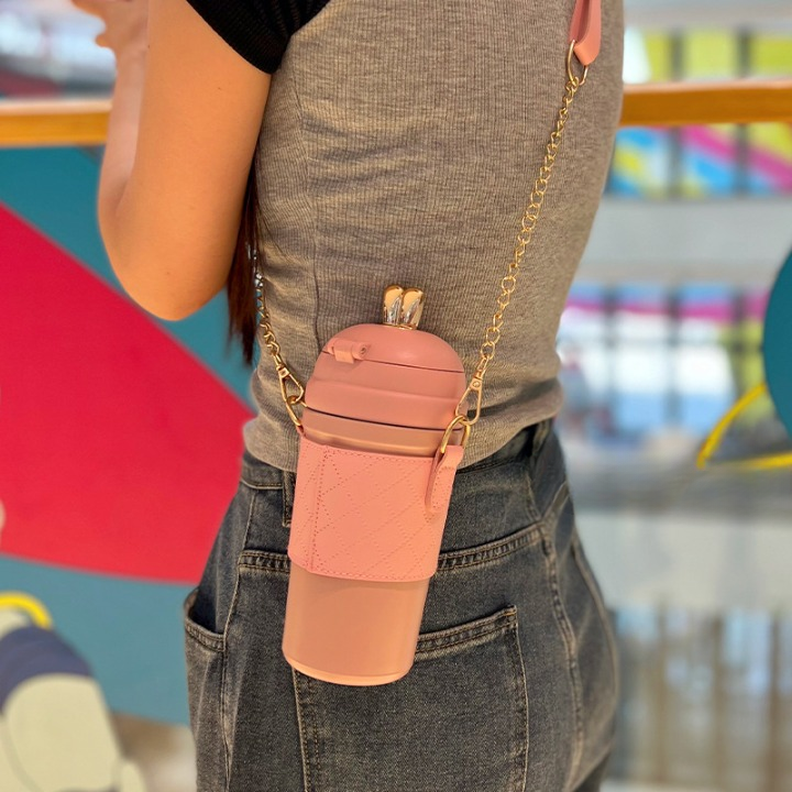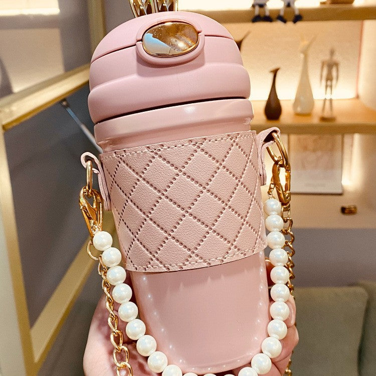 π₯€β¨ Cute Fashion Thermos Bottle β Insulated Drink Flask with Stylish Chain Strap & Quilted Case ππ